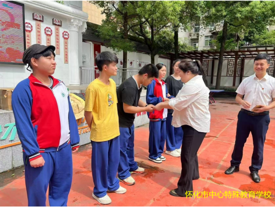 隨后,活動走進懷化市中心特殊教育學校。開展了“逐夢大學”助學金慰問及學習用品捐贈儀式,同時給五名高三畢業(yè)生進行助學金慰問,給特殊學校的學生們送上嶄新的學習用品。大家用耐心和熱情傳遞關愛,并與師生親切互動,市城建投全體人員請?zhí)匦@蠋熃虝麄儭凹佑汀钡氖终Z表達,學會后,大家一起向學生們比出了“加油”的手語,鼓勵他們充滿信心、堅定自信。老師們對市城建投的暖心之舉表達感謝:“這份關懷不僅為孩子們提供了物質支持,更讓他們感受到社會的溫暖與尊重。”