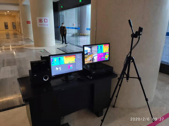為高效、可靠的檢測進(jìn)入智慧大廈人員的體溫,市城建投公司及時購置了兩臺人體熱成像紅外檢測體溫設(shè)備,在大廳入口處搭建了可視化在線式熱成像體溫檢測系統(tǒng)(非接觸式方式)。設(shè)備安裝調(diào)試到位后,市城建投公司及時組織物業(yè)、安保等工作人員進(jìn)行操作使用培訓(xùn),并重新制定了智慧大廈進(jìn)出管理流程,將智慧大廈南門劃分為進(jìn)口和出口,其中南門最西側(cè)通道為進(jìn)口,南門中間西側(cè)通道為出口,在進(jìn)出口張貼指示標(biāo)識引導(dǎo)人員分流,減少接觸性感染風(fēng)險。