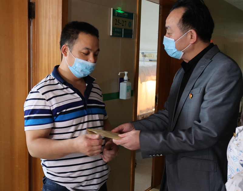 5月26號,市城建投公司黨委委員、監(jiān)事會主席劉運祥帶領(lǐng)部分黨員代表到懷化市第一人民醫(yī)院看望溆浦縣龍?zhí)舵?zhèn)諶孫華一家并送去了善款一萬余元,盡綿薄的力量緩解諶孫華一家燃眉之急。