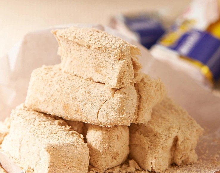 沅陵酥糖用料講究,制作工藝獨(dú)具一格,其精美之處就在于餡心制作上。餡是用沅陵當(dāng)?shù)爻霎a(chǎn)的芝麻,另外加飴糖、榴花糖、花生油、面粉等為料。做餡前先把芝麻用水浸泡、洗凈、去亮,然后用鍋把芝麻焙干炒熟,炒熟的芝麻要求呈銀白色,顆粒膨脹,用手指捻即成粉末,再同其它原料合成餡心子。