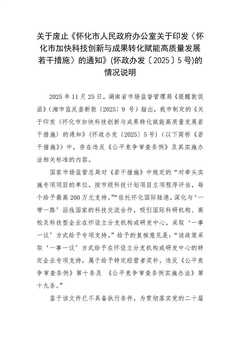 解讀:關(guān)于廢止《懷化市人民政府辦公室關(guān)于印發(fā)〈懷化市加快科技創(chuàng)新與成果轉(zhuǎn)化賦能高質(zhì)量發(fā)展若干措施〉的通知》(懷政辦發(fā)〔2025〕5號)
