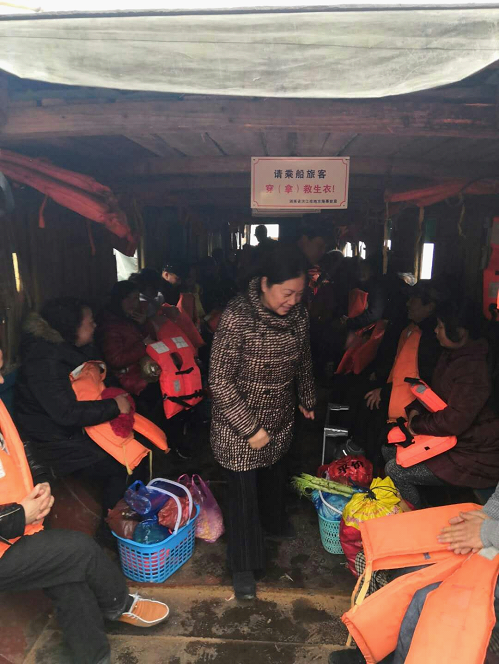 春運(yùn)辦副組長(zhǎng)胡香蓮督促乘客穿(拿)救生衣