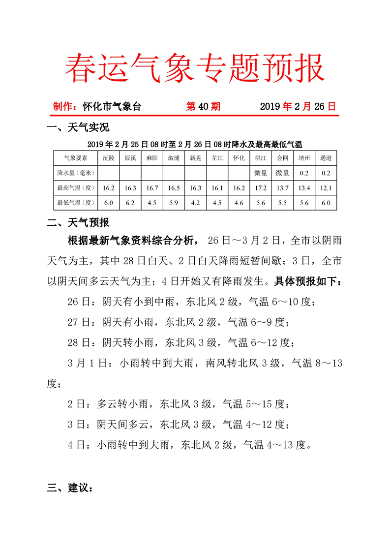 春運(yùn)氣象專題預(yù)報(bào)(第40期)