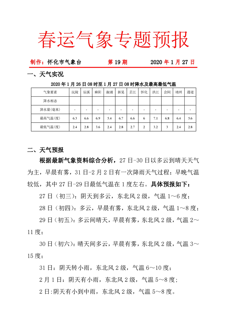 春運(yùn)氣象專題預(yù)報(bào) 第19期