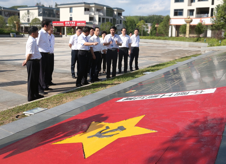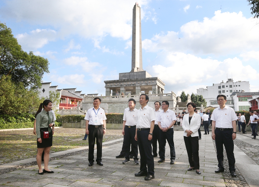 來(lái)到寨前鎮(zhèn),許達(dá)哲一行到紅六軍團(tuán)西征誓師地,瞻仰了誓師紀(jì)念廣場(chǎng)等。許達(dá)哲指出,紅六軍團(tuán)突圍西征,為中央紅軍長(zhǎng)征起到了偵察、探路的先遣隊(duì)作用。我們要充分發(fā)揚(yáng)這種探索開(kāi)拓精神,甘當(dāng)偉大事業(yè)的“馬前卒”、爭(zhēng)做開(kāi)拓進(jìn)取的“急先鋒”。