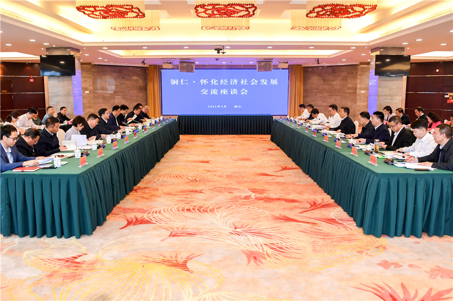(4月22日,懷化市黨政代表團赴銅仁市學習考察。圖為銅仁·懷化經(jīng)濟社會發(fā)展交流座談會現(xiàn)場。)