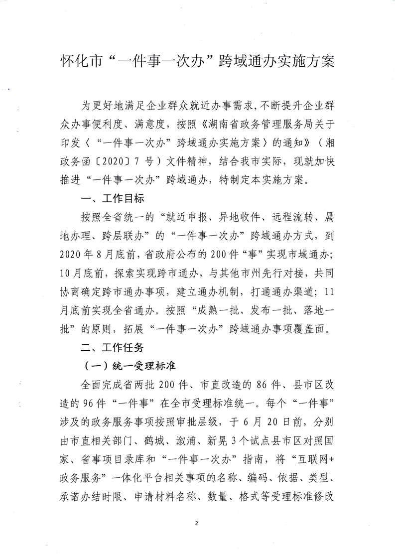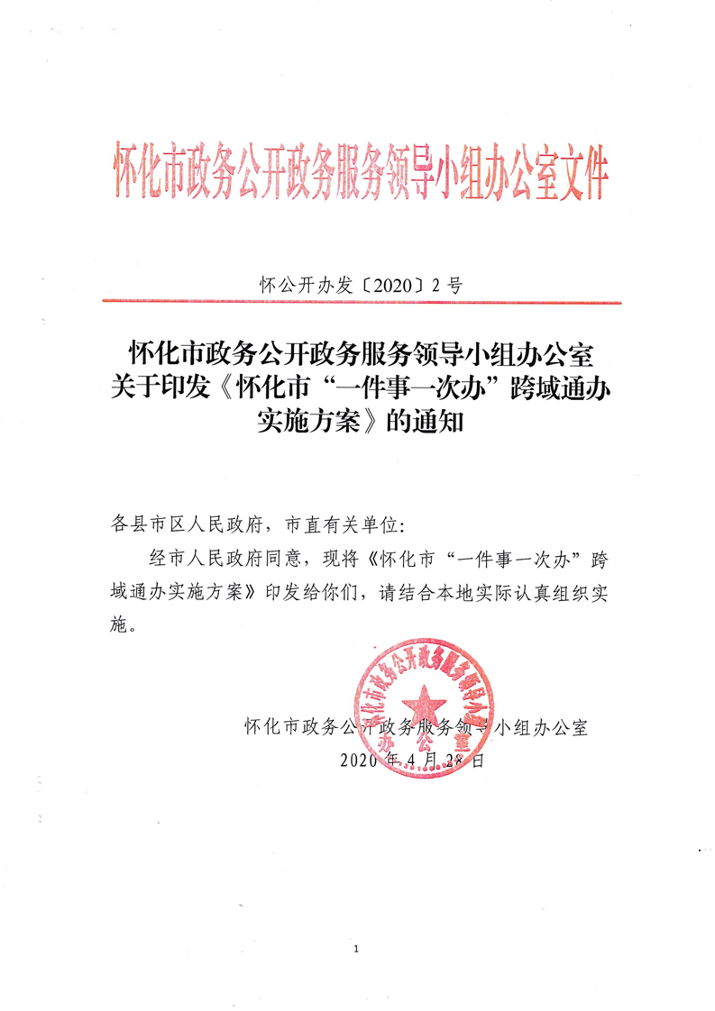 懷化市政務(wù)公開(kāi)政務(wù)服務(wù)領(lǐng)導(dǎo)小組辦公室關(guān)于印發(fā)《懷化市“一件事一次辦”跨域通辦實(shí)施方案》的通知