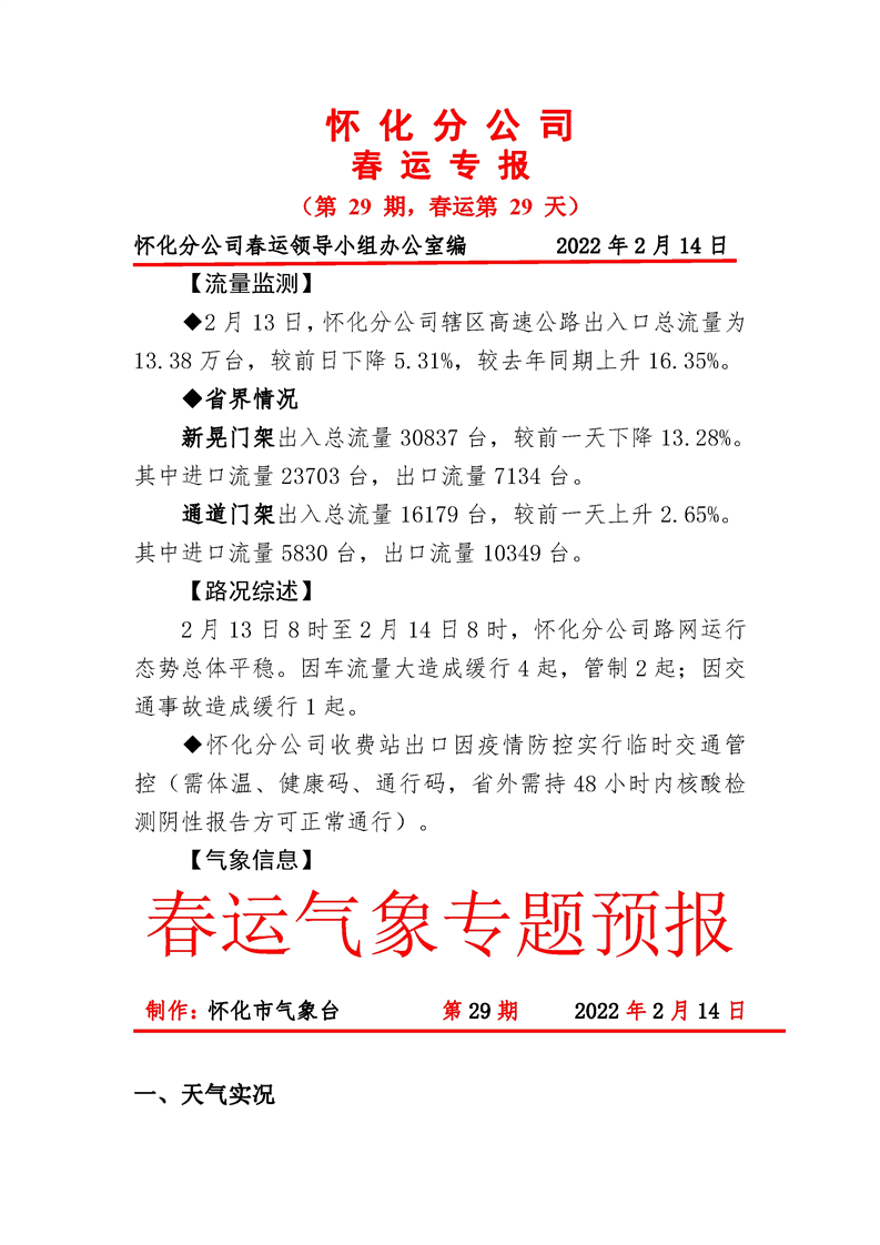 2022年高速懷化分公司第29期春運(yùn)專報(bào)