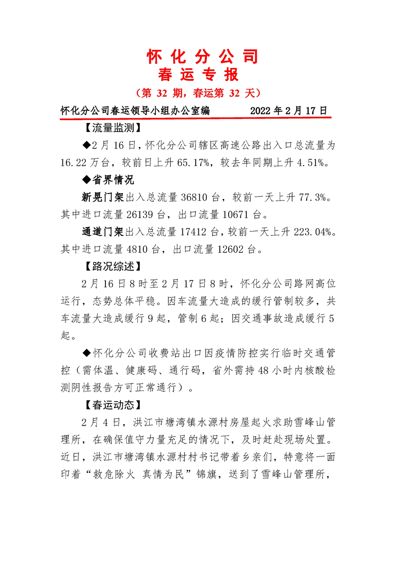 2022年高速懷化分公司第32期春運專報