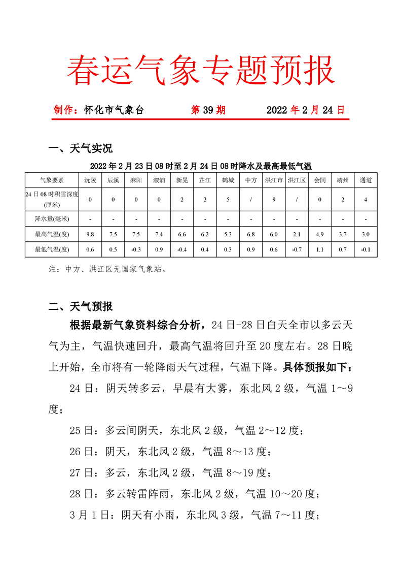 春運(yùn)氣象專(zhuān)題預(yù)報(bào) 第39期