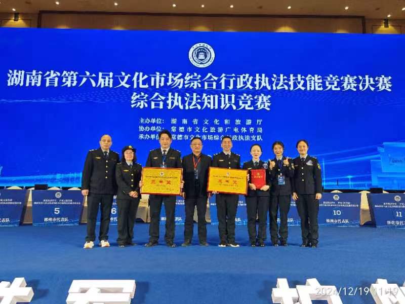 ????12月19日,湖南省第六屆文化市場(chǎng)綜合行政執(zhí)法技能競(jìng)賽決賽在常德圓滿落幕。本次比賽為期三天,設(shè)置體能測(cè)試、政策法規(guī)知識(shí)、執(zhí)法文書制作及案卷歸檔、案卷糾錯(cuò)、平臺(tái)應(yīng)用及網(wǎng)絡(luò)案件證據(jù)固定、綜合執(zhí)法知識(shí)等6個(gè)科目。懷化市采用新老結(jié)合組隊(duì),全力以赴迎戰(zhàn),經(jīng)過激烈角逐,取得多項(xiàng)榮譽(yù):獲團(tuán)體單項(xiàng)案卷糾錯(cuò)三等獎(jiǎng)、平臺(tái)應(yīng)用及網(wǎng)絡(luò)案件證據(jù)固定三等獎(jiǎng),沅陵縣文旅廣體局郭麗娟獲政策法規(guī)知識(shí)個(gè)人二等獎(jiǎng)。