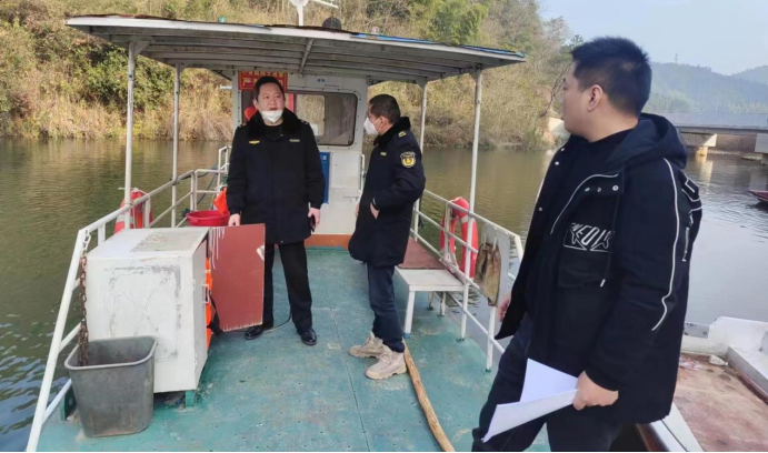 1月9日,靖州縣交通運(yùn)輸綜合行政執(zhí)法大隊(duì)執(zhí)法人員對(duì)一鄉(xiāng)鎮(zhèn)渡口的渡船進(jìn)行檢查