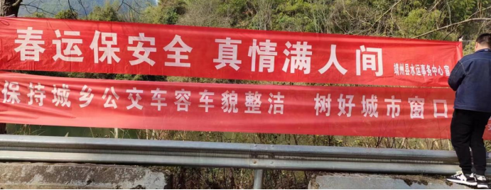 1月10日,靖州縣水運(yùn)事務(wù)中心在多個(gè)鄉(xiāng)鎮(zhèn)懸掛水運(yùn)安全宣傳標(biāo)語
