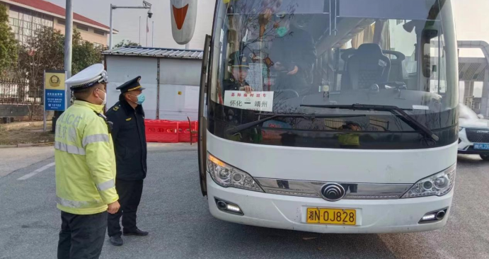 1月11日,靖州縣交通運(yùn)輸綜合行政執(zhí)法大隊(duì)執(zhí)法人員與高速交警對(duì)入靖客運(yùn)車輛進(jìn)行檢查