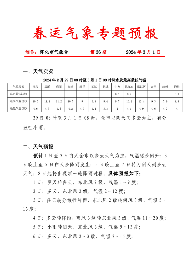 春運(yùn)期間氣象專題預(yù)報(bào)2024030110-036