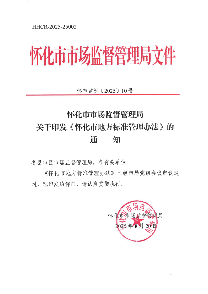 關(guān)于印發(fā)《懷化市地方標準管理辦法》的通知