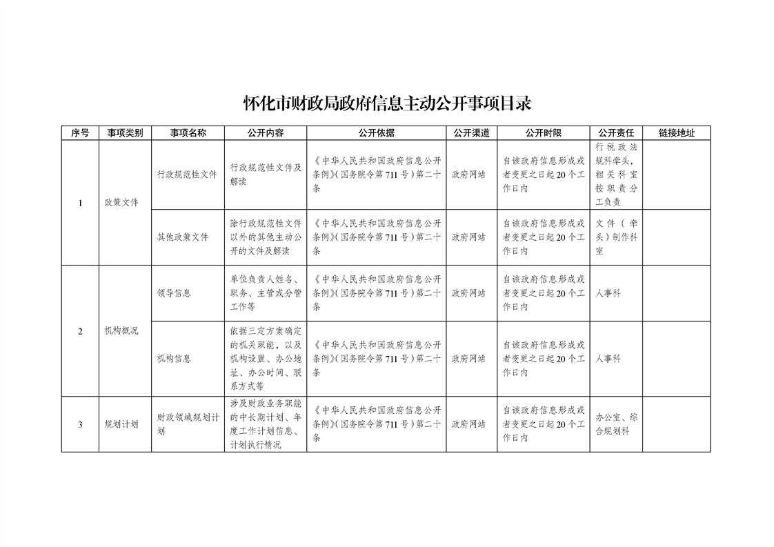 懷化市財政局政府信息主動公開事項(xiàng)目錄